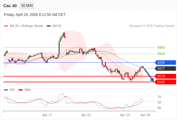 Cac 40 当日内: 短期关键阻力位在8265。