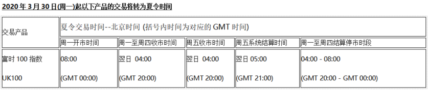 2020夏令时交易时间通知